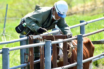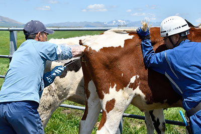 授精する牛を入念に確認して、授精師さんによる人工授精