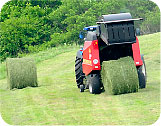 牧草ロール(機械:ロールベーラー)帯状に並べられた牧草をロールにします。