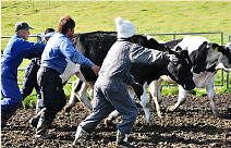 授精のため毎日のように集められているので、監視人の声を聞くと牛たちは自然と集まってきます