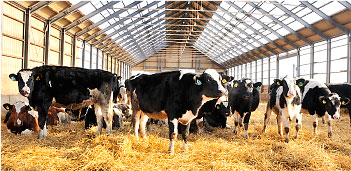 牛たちはパドック付きの広い牛舎ですごしています。