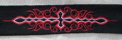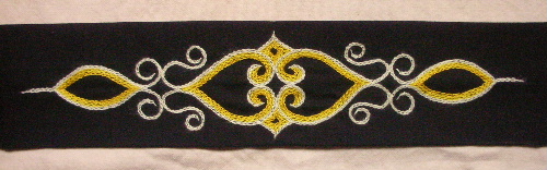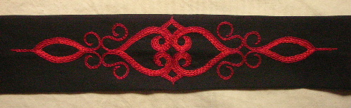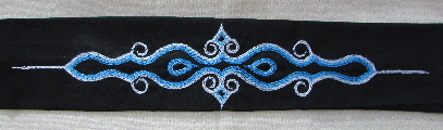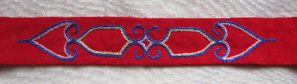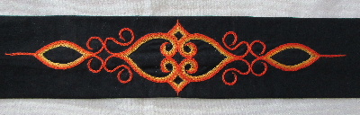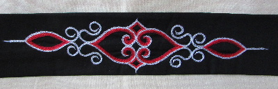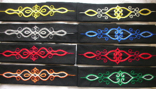 | 商品番号50701 マタンブシ 細 ベルベット生地にアイヌ紋様を刺繍した、細いタイプのマタンブシ(はちまき)です。 |