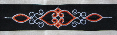 | 商品番号50703 マタンブシ チンチリ 綿生地にアイヌ紋様を刺繍した、マタンブシ(はちまき)です。 |