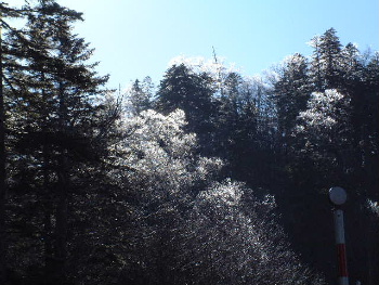 この日の森は樹氷や樹霜とは違いクリスタルの輝きでした。