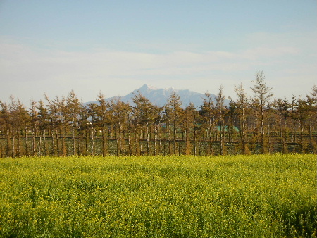 藻琴山、硫黄山、兜山、青々と伸びてきた牧草、ホテル横でひっそりと淡いピンクに咲く桜の花。