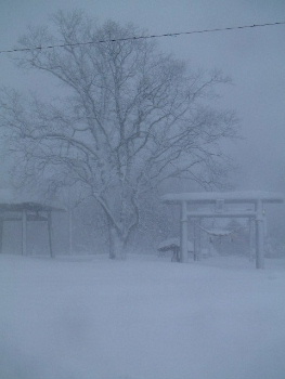 自宅玄関前はこんなに吹き溜まりが出来てしまいました。 川湯神社