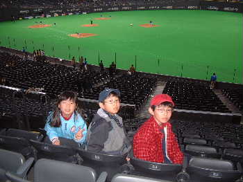 新庄選手やプロ野球選手みんなカッコよかったし、札幌ドームは大きくて、きれいな球場でした。【大寛・佳典・恵梨】
