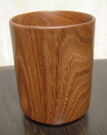 木の湯呑は、保温性が高く、冷めにくいんです。持つ手も熱くないし、軽い。