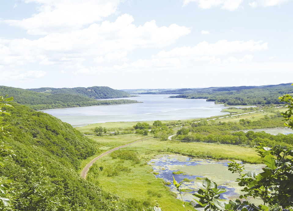 国道391号線沿いにある看板と駐車場が目印。展望台にあがると、360度のパノラマで塘路湖や湿原を一望することができるビューポイントです。道中にはチャシ跡(アイヌ民族が儀式や見張りなどを行うために築いた場所)があり、ミズナラ、ハルニレの間を抜けて進んでいく。夏は湖の青と湿原の緑のコントラストが絶妙です。
