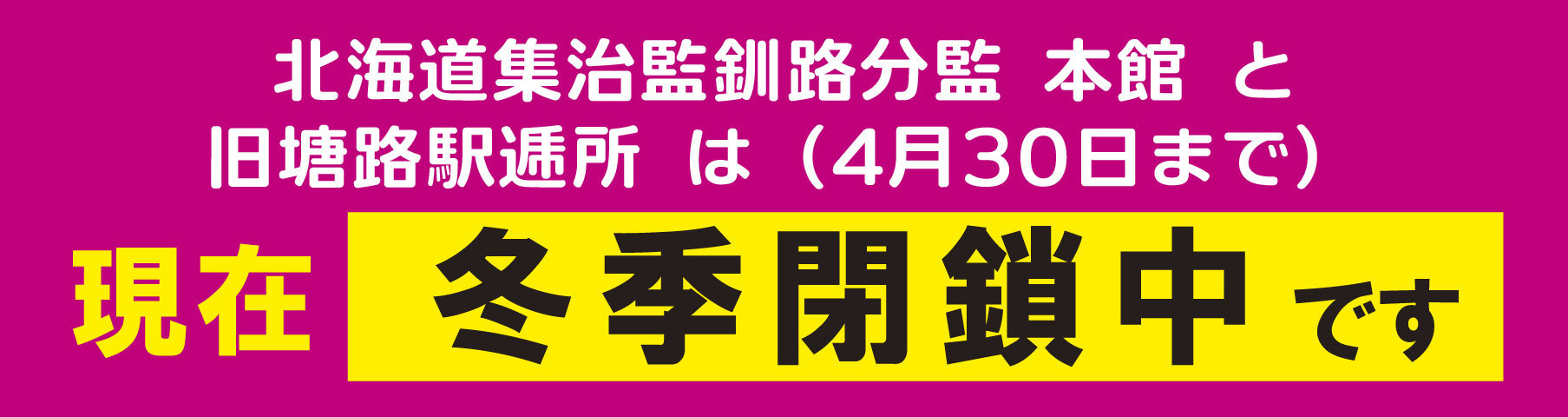つきましては本来北海道集治監釧路分監は10月31日までの開館となっておりますが、本年については、11月30日まで開館期間を延長致します。たくさんのご来館をお待ちしております。 【開館期間の延長】 11月1日~11月30日 9時30分~16時30分(休館日 11月4、10、17、25日) |