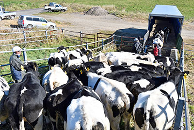 放牧されていた牛たちは、ゲージに集められトラックに乗り、パドック付の牛舎に移動しました。