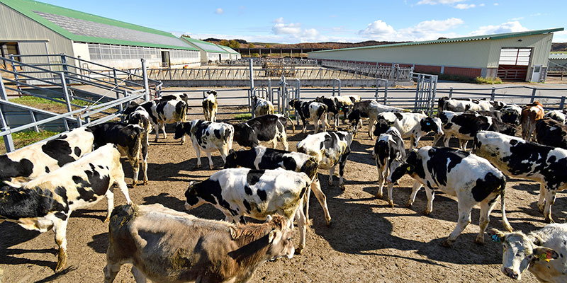 牛舎で過ごす牛たちは、発情の兆候が見られると人工授精が行われ、妊娠が確認されると故郷の牛舎に帰って出産を迎えます。