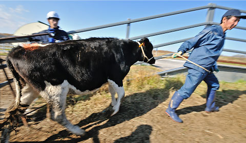 牧場には、これから故郷へ帰る牛や、人工授精を待つ牛たちが残っています。