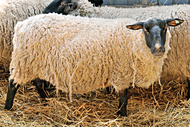 今年生まれた子羊(サフォーク種)とサフォークの親子